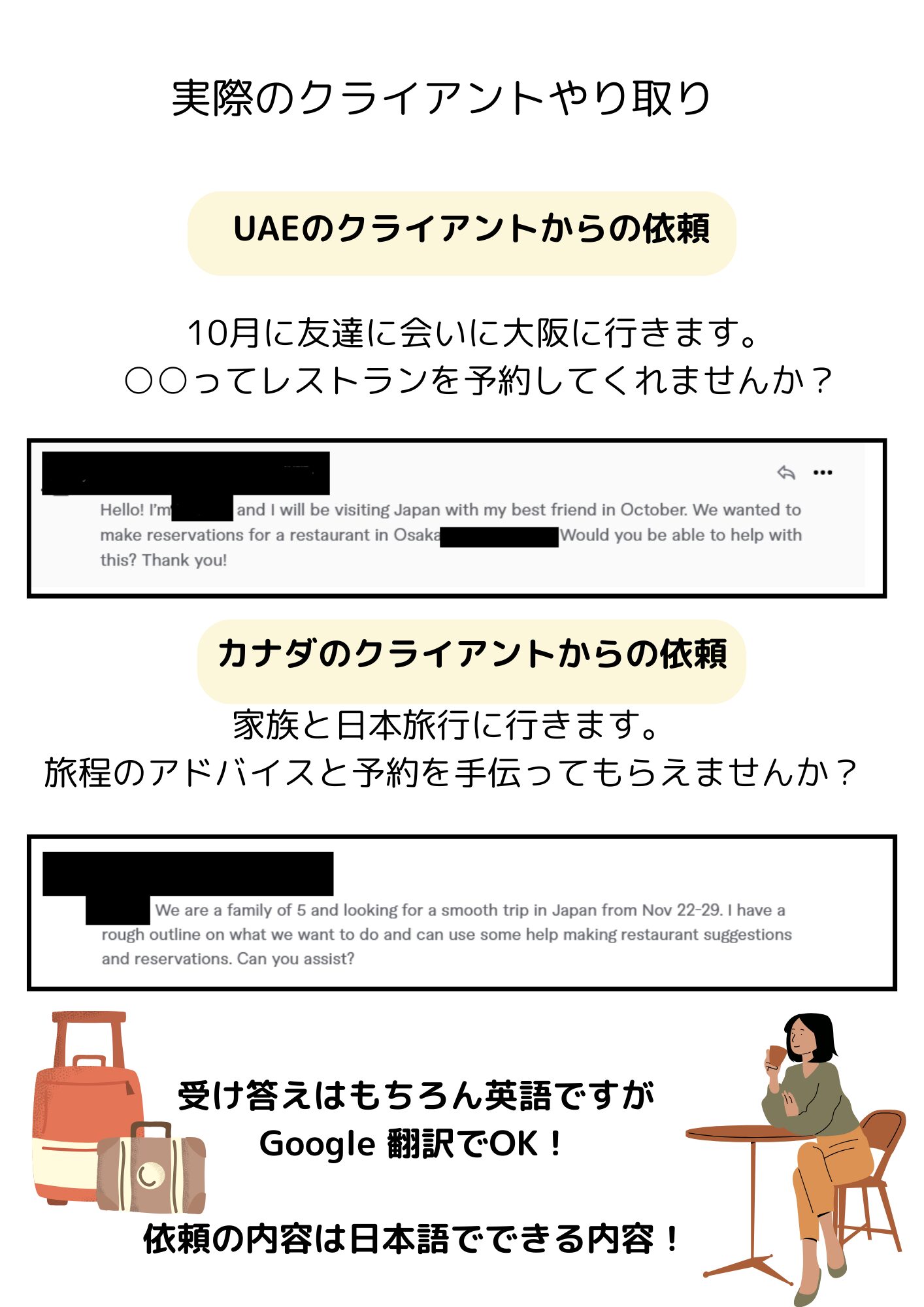 それにクライアントの日本での旅行の思い出を
